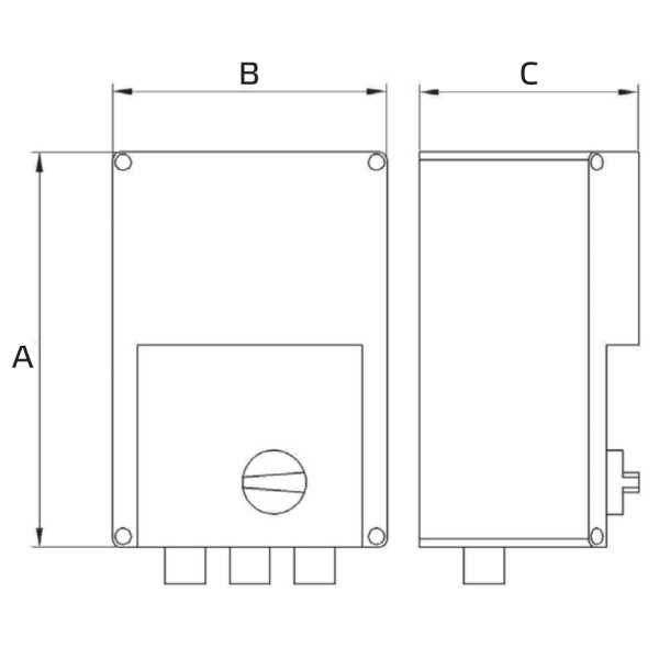 1. inaltime (A) x latime (B) x adancime (C): 305 x 200 x 140 mm (vezi figura 2)