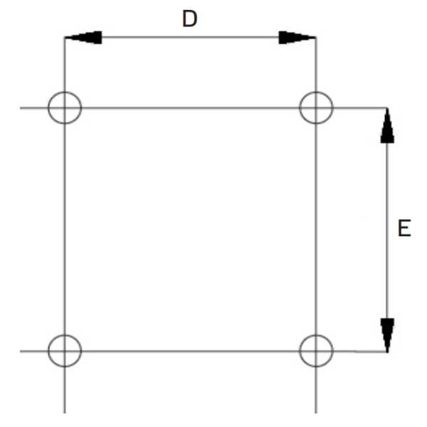2. distanta dintre gaurile de montaj: latime (D) x inaltime (E): 255 x 255 mm (vezi figura 3)