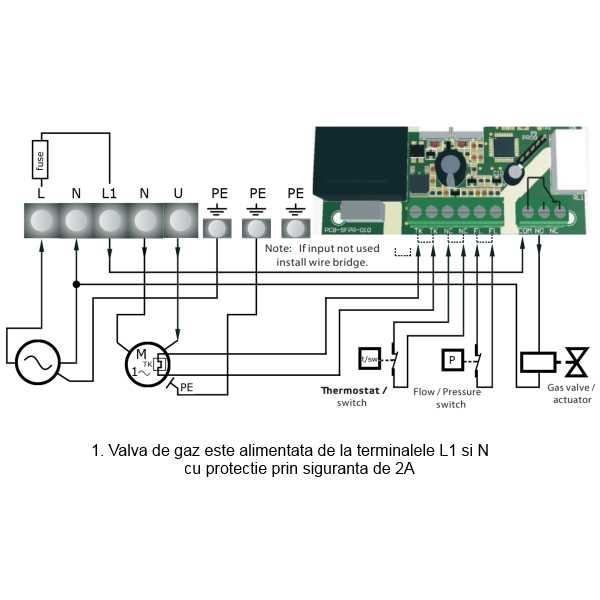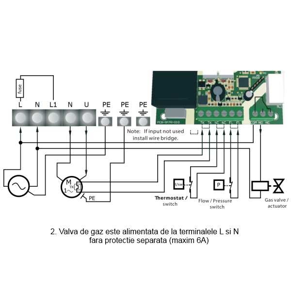 8. iesire pentru alimentarea vanei de gaz (COM, NC, NO)
