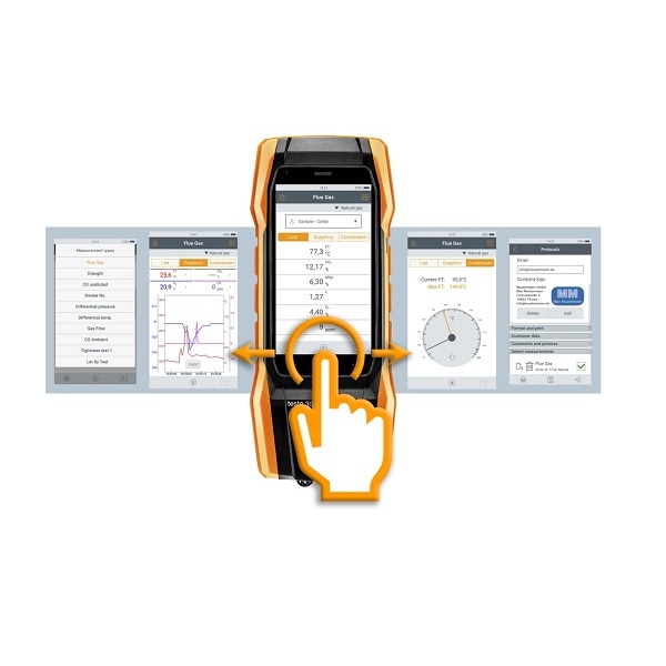 Cu Bluetooth integrat, Testo 300 permite transmiterea automata a datelor catre smartphone, tableta sau laptop prin aplicatia Testo Smart App. Toate rapoartele pot fi generate instantaneu in format PDF si trimise direct clientului, eliminand necesitatea notitelor manuale si simplificand documentatia de service.