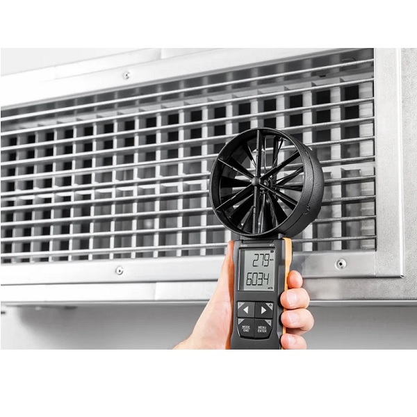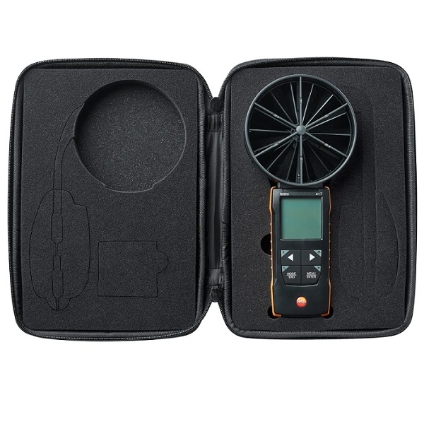 Testo 417 set 2 - Anemometru cu elice, palnii de masurare si dispozitiv de uniformizare, cod produs 0563 2417, se utilizeaza la masurarea debitului, a debitului volumic si a temperaturii la intrarile si iesirile de aer. Acest set mai este utilizat la reglarea eficienta a ventilatiei rezidentiale, iar documentarea rapida se face cu ajutorul Testo Smart App.