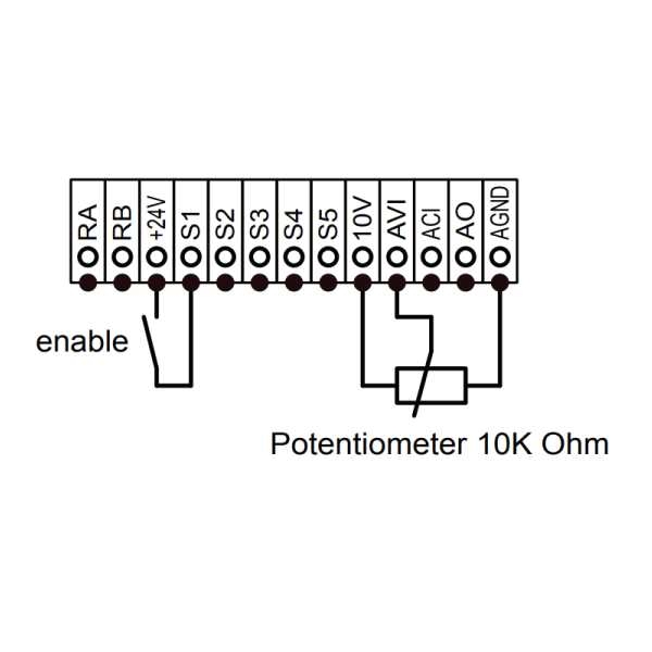3. Cablul de alimentare dintre convertizorul de frecventa si motor trebuie sa fie ecranat, cu ecranajul conectat la ambele capete. Lungimea cablului trebuie sa fie mai mica de 50 de metri, altfel pot apare defectiuni in functionare.