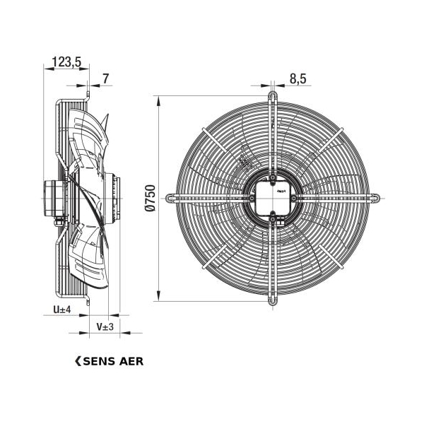 8. tip ventilator: aspiratie. Aerul este aspirat dinspre motor si evacuat prin grila de protectie