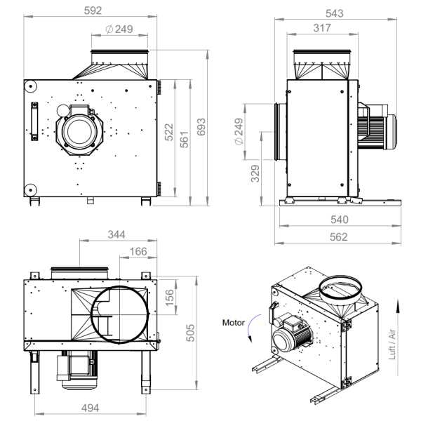 Dimensiuni ventilator hota exterior Ruck MPS250E220: