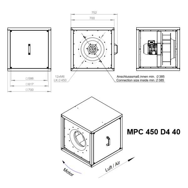 Caracteristici ventilator hota profesionala MPC 450 D4 40: