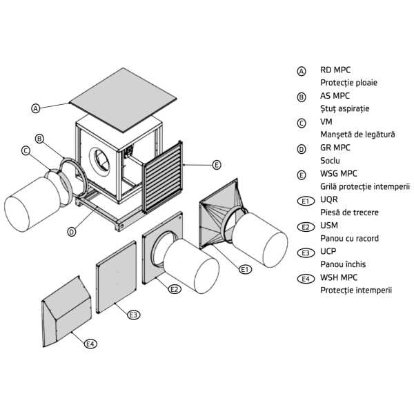 Pentru instalarea ventilatorului puteti comanda urmatoarele accesorii: