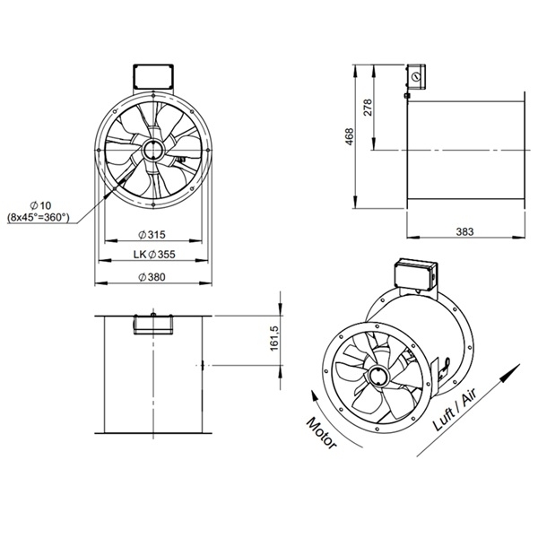 Ventilatorul de tubulatura AL 315 D4 F4 01 (cod produs 154702) este un ventilator axial controlabil prin frecventa, cu motor trifazat, fabricat de producatorul german Ruck. Ventilatorul are o eficienta aerodinamica foarte mare iar fluxul de aer trece peste motor. Este certificat pentru desfumare conform DIN EN 12101-3 (400°C / 120 min).